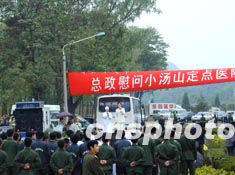 十四日,解放軍總政歌舞團(tuán)到北京小湯山“非典”定點(diǎn)醫(yī)院慰問醫(yī)護(hù)人員,受到熱烈歡迎。作者:安然