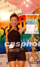 在香港主持“笑談普通話”的藝人利嘉兒,5月15日在香港展示美好身段,為”Extrim易速纖”減肥產(chǎn)品出任代言人。中新社傳真 洪少葵 攝