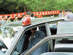 昨日上午,張銀波、王新華駕駛摩托車前往光明辦事。當(dāng)兩人行駛到觀光公路育新學(xué)校路段時(shí),突然一輛車頂上掛著一個(gè)紅色警燈的黑色皇冠轎車逼近了他們,車上有人沖他們大聲喊道:停車。兩人以為是警察查車,立刻停了下來。