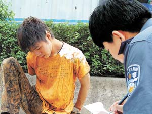 吊在車門上意圖逃竄的歹徒并沒有能支持太久,他從車上摔落到了馬路上。狡猾的歹徒躺在地上,一動(dòng)不動(dòng),當(dāng)民警停下車來向他逼近之時(shí),他從背后掏出一把馬刀便向民警砍去,但沒有得逞,就被民警當(dāng)場抓獲。