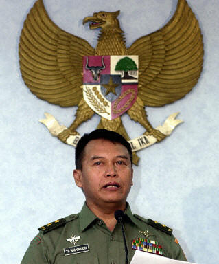 印尼總統(tǒng)軍事秘書哈桑努丁少將宣讀由梅加瓦蒂總統(tǒng)簽署的總統(tǒng)令決定,從19日凌晨零點(diǎn)開(kāi)始在印尼最西部的亞齊省實(shí)施戒嚴(yán)令。
