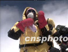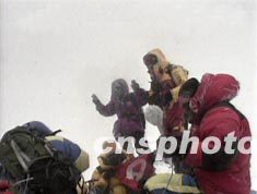 中國登山隊五月二十一日下午十三點三十八分勝利登上珠穆朗瑪峰峰頂。中新社 圖