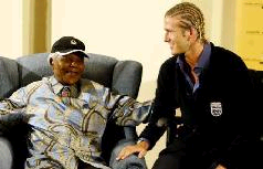 曼德拉表示,他相信貝克漢姆會(huì)支持南非對(duì)世界杯的渴望!拔业玫截惪藵h姆的承諾,他會(huì)支持我們的申辦。那就給了我們很大的希望,”曼德拉說。