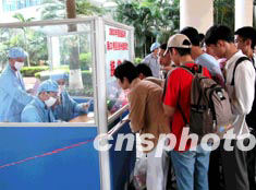 高考臨近,海南省在口岸設(shè)立接待處,對(duì)在外借讀返瓊的考生進(jìn)行嚴(yán)格檢查,以防輸入性“非典”進(jìn)入海南。作者:李建國(guó)
