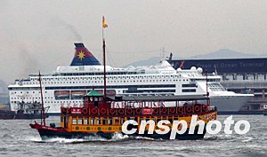 世界衛(wèi)生組織5月23日起解除對香港和廣東省維持個多月的旅游警告,稱兩地已有效控制SARS疫情。消息無疑是香港重振經(jīng)濟(jì)的強(qiáng)心針。圖為穿梭在維多利亞港灣的海上郵輪和仿古游船將迎接游客重臨香江。洪少葵 攝