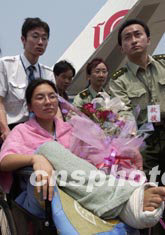 五月三十日,在阿爾及利亞地震中受傷的李燕斐等四名中國建筑工程總公司員工乘包機(jī)回到北京。在5月22日發(fā)生的阿爾及利亞地震中,共有9名中國人遇難,9人受傷。中新社記者:張煒