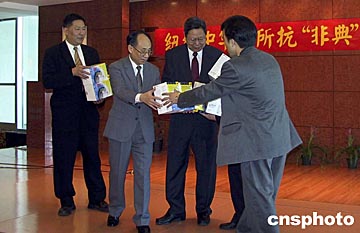 中新社紐約五月三十日電(記者趙海燕)主要由旅美臺灣同胞組成的傳統(tǒng)僑團中華公所三十日上午將一萬五千只口罩送到中國駐紐約總領(lǐng)館,以此表達(dá)對祖國大陸抗擊“非典”的支持。