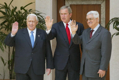 另據(jù)報(bào)道,約旦國王阿卜杜拉二世4日在亞喀巴王宮分別會(huì)見美國總統(tǒng)布什、以色列總理沙龍和巴勒斯坦自治政府總理阿巴斯,并在三方會(huì)晤結(jié)束后主持了記者會(huì)。