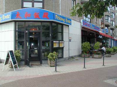 在德國首都柏林?jǐn)?shù)百家中餐館中,有一家引起了記者濃厚的興趣。此館名為“太和飯殿——北京烤鴨”,一則是因?yàn)橐浴氨本┛绝啞闭袛堫櫩偷闹胁宛^似乎在柏林僅此一家,更多的卻是因?yàn)樵谒谋澈蟛刂r為人知的故事:這里以及附近的樓舍曾是納粹德國元兇希特勒的第三帝國總理府所在地。