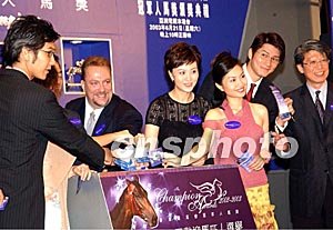 2002/2003年度香港賽馬會(huì)冠軍人馬獎(jiǎng)?lì)C獎(jiǎng)典禮”記者會(huì)六月十日在香港舉行, 香港賽馬會(huì)高層人士、嘉賓以及眾多香港藝員在會(huì)上揭曉各個(gè)馬匹獎(jiǎng)項(xiàng)的候選名單,并公布有關(guān)“最受公眾歡迎馬匹”。 錢興強(qiáng) 攝