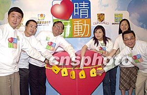 6月10日,香港醫(yī)學(xué)會會長勞永樂、副會長馮宜亮醫(yī)生、中大醫(yī)學(xué)院副院長沈祖堯教授、中大香港健康情緒中心主管李誠教授、商臺總經(jīng)理黃寶珠及「心晴大使」楊千樺在香港進(jìn)行心情行動「公開心晴」啟動儀式。鄧慶樂 攝