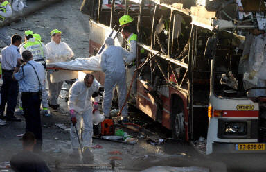 耶路撒冷市一輛公共汽車當天在耶路撒冷最繁華的海法大街上發(fā)生爆炸,造成至少7死30傷。