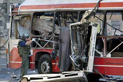 就在爆炸現(xiàn)場附近一家鞋店當(dāng)服務(wù)員的哈吉德·斯泰恩渾身顫抖著哭著告訴記者說:“爆炸發(fā)生時(shí),我剛剛從14路公共汽車上下來。我一下子就被炸蒙了,根本不知道躲往哪躲,藏往哪藏!我簡直不敢相信自己會(huì)有這么幸運(yùn)!”劇烈的爆炸炸飛了這輛紅白相間的14路公共汽車的所有車窗,車的左側(cè)被炸出一個(gè)大洞,車頂被整個(gè)兒掀開。