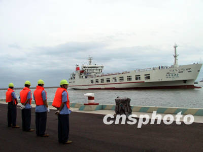 中新網(wǎng)?诹率娜针 題:“粵海鐵二號”順利抵達(dá)海南島