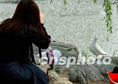 六月的北京園林中,人工飼養(yǎng)的白色和平鴿好似模特學會走貓步擺甫士,任游人拍照謀殺菲林。中新社記者 賈國榮 攝