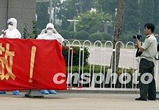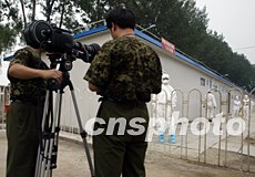 解放軍小湯山醫(yī)院將在20日送走最后一批SARS康復患者后結束光榮使命,18日軍方攝影師在隔離區(qū)認真記錄該醫(yī)院的最后時刻。中新社記者:任晨鳴