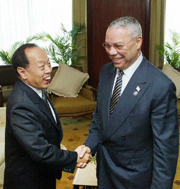 中新網(wǎng)6月18日電 中國(guó)外交部長(zhǎng)李肇星18日在金邊會(huì)見(jiàn)了美國(guó)國(guó)務(wù)卿鮑威爾,雙方就兩國(guó)關(guān)系和共同關(guān)心的其他問(wèn)題交換了意見(jiàn)。