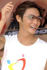 2003年6月22日,香港歌手陳驊在香港維多利亞公園舉行的“同心攜手畫出彩虹”嘉年華活動上,為賓客演唱大會主題歌曲《同心攜手畫出彩虹》。中新社記者 錢興強