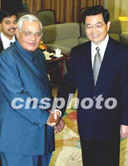 胡錦濤對(duì)瓦杰帕伊來(lái)華訪問(wèn)表示歡迎。他說(shuō),昨天兩國(guó)總理進(jìn)行了富有成果的會(huì)談,達(dá)成了廣泛共識(shí),雙方簽署了《中印關(guān)系原則與全面合作宣言》等一系列合作文件,為兩國(guó)關(guān)系的進(jìn)一步發(fā)展奠定了法律基礎(chǔ)。