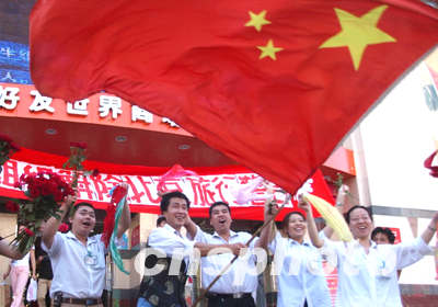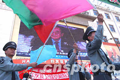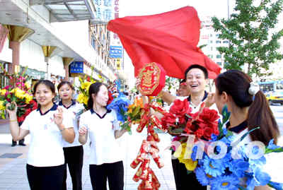 王府井的一家專賣店里別出心裁地放起了薩克斯版的《回家》,這里的老板說,他們希望市道重振,能盡快向SARS之前的水平回歸。這家店的對面——中國照相館門前,五星紅旗與黨旗齊舞,數十只彩色氣球被派發(fā)或放飛天際,為北京祈福。