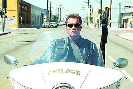 《終結(jié)者3》7月2日上映,這之前有記者采訪了男主角施瓦辛格,見(jiàn)到他時(shí),他正在和他四歲的兒子克里斯多佛在飯桌上玩國(guó)際象棋。當(dāng)時(shí)施瓦辛格在棋局中處于劣勢(shì),看到我們,他干脆將木質(zhì)棋盤(pán)放到一邊,并搬來(lái)幾張椅子,還派發(fā)飲料,很開(kāi)心地接受采訪。在他舒服地坐在凳上的時(shí)候,卡其布短褲下膝蓋上的疤痕清晰可見(jiàn)。在整個(gè)采訪的過(guò)程中,克里斯多佛會(huì)不時(shí)地爬到他爸爸身上扯他的耳朵,不過(guò)施瓦辛格也不在意,繼續(xù)我們的談話,談他拍《終結(jié)者3》的事情。談話中,施瓦辛格說(shuō):“我曾說(shuō)過(guò),我會(huì)回來(lái)的,現(xiàn)在,我回來(lái)了!辈稍L最后,他還強(qiáng)調(diào)“有人說(shuō)我老了,我會(huì)證明給他們看,我像20年前一樣棒!