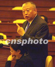 六月二十六日,香港特首董建華出席立法會“國家安全(立法條文)條例草案”委員會舉行的行政長官答問會。中新社記者 潘索菲