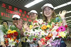 北京“雙解除”后的第一個(gè)境外旅游團(tuán)六月三十日抵達(dá)北京。由六十名韓國各界人士組成的旅游團(tuán)在北京機(jī)場受到人們的熱烈歡迎。中新社記者 史利 攝
