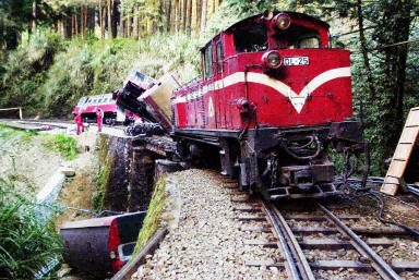 事故發(fā)生在距離阿里山車站還有400多米處,據(jù)目擊者稱,事故可能是由于車速過快導(dǎo)致,當(dāng)時(shí)小火車的第一節(jié)先撞上山壁,接著后面的車廂追撞上去,造成3節(jié)車廂脫軌,1節(jié)翻落山谷中。