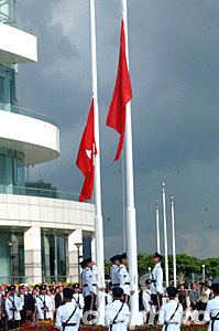 組圖:香港慶;貧w祖國(guó)六周年舉行升旗禮