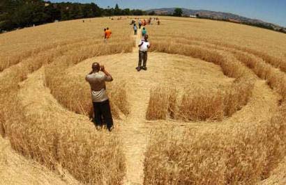 研究人員并不是到現(xiàn)場的唯一人群,數(shù)百名當(dāng)?shù)孛癖娨簿奂浆F(xiàn)場,一些人站在怪圈里忙碌地用計算器計算,另一些人則對眼前的一切感到非常驚奇,還有一些人像對待黃金一樣地小心翼翼的收集怪圈里的小麥。
