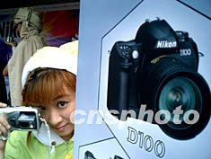 七月四日下午,在廣州太平洋數(shù)碼節(jié)上,尼康數(shù)碼寶貝活躍在廣州街頭,為尼康系列數(shù)碼相機(jī)促銷。作者:陳文