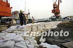四日,數(shù)百名武警冒著酷暑進(jìn)行上海軌道交通4號線滲水事故搶險,一度被黃浦江潮水沖出缺口的堤壩已經(jīng)得以加固。作者:湯彥俊