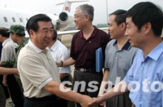 七月五日,國務(wù)院副總理回良玉乘專機(jī)抵達(dá)安徽阜陽機(jī)場(chǎng),前往淮河抗洪前線,看望受災(zāi)群眾,查看災(zāi)情。中新社記者:盛佳鵬