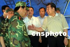 回良玉詳細詢問了趙華部隊來了多少人,生活安排好了沒有等問題,趙華一一作出了回答。回良玉要求趙華要關心照顧好戰(zhàn)士們,發(fā)揚好部隊的光榮傳統(tǒng)。陪同視察的安徽省長王金山也說:“安徽人民感謝你們!