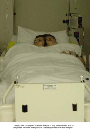 新加坡萊佛士醫(yī)院新聞發(fā)布室7月6日消息,這是伊朗連體姐妹5日接受檢查后,在醫(yī)院特護(hù)室里休息的情景。此時距離手術(shù)不過數(shù)小時的時間。(聞新芳)