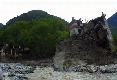 中新網(wǎng)7月14日電 趟過(guò)泥濘,走過(guò)獨(dú)木橋,眼前是一個(gè)巨大的泥石流沖擊扇,一條混濁的急流從中間穿過(guò),發(fā)出沉悶的響聲。空氣中依稀可以嗅出樹(shù)木的幽香,沖擊扇上到處是已經(jīng)燃完的香和零落的紙錢(qián),幾條新掛起的經(jīng)幡在風(fēng)中飄動(dòng)。要不是在這數(shù)十萬(wàn)立方米的堆積層上偶然發(fā)現(xiàn)一輛露出一半且已扭曲的自行車(chē)和一個(gè)快被完全淹沒(méi)的電冰箱,誰(shuí)能相信這厚厚的沙石和泥土堆積的地方,兩天前還是一個(gè)享譽(yù)中外的小村莊———“丹巴美人谷”!