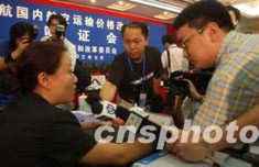 廣受關(guān)注的中國(guó)民航價(jià)格聽(tīng)證會(huì)七月十五日在北京舉行,來(lái)自各地的消費(fèi)者、經(jīng)營(yíng)者及有關(guān)方面代表將對(duì)民航運(yùn)價(jià)改革工作小組起草的《民航國(guó)內(nèi)航空運(yùn)輸價(jià)格改革方案》進(jìn)行公開(kāi)論證。中新社記者:武仲林
