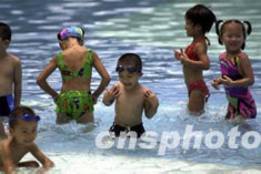 深圳連日持續(xù)高溫,局部氣溫高達攝氏三十七度,氣象臺向市民發(fā)出高溫警告,提醒民眾防暑降溫。圖為小朋友們在游泳池里避暑。作者:陳文