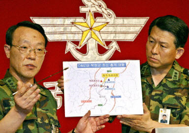 當(dāng)?shù)貢r(shí)間上午10時(shí),韓國(guó)國(guó)防部就此事件舉行了記者招待會(huì),正式就此事件進(jìn)行了說(shuō)明。在記者招待會(huì)上,韓國(guó)國(guó)防部官員舉著地圖詳細(xì)說(shuō)明了事發(fā)的經(jīng)過(guò)。韓國(guó)方面認(rèn)為,是朝方率先開(kāi)的槍?zhuān)掳l(fā)地點(diǎn)在韓國(guó)京畿道漣郡與朝鮮相接的軍事分界線非軍事區(qū)內(nèi)。韓方先向韓國(guó)警備哨所發(fā)射了4子彈,這4發(fā)子彈是14.5毫米,確是機(jī)槍子彈,韓國(guó)軍隊(duì)“根據(jù)交戰(zhàn)規(guī)則”向朝方哨所發(fā)射了17發(fā)機(jī)槍子。在此次事件中,韓國(guó)方面沒(méi)有傷亡。