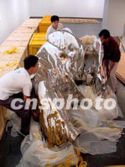 “威尼斯雙年展”自一八九五年設(shè)立以來已有百余年歷史,它被譽(yù)為藝術(shù)界的“奧林匹克”,中國在“二00三年第五十屆威尼斯雙年展”中首次建立“中國館”并設(shè)在廣州廣東美術(shù)館。該展將于二十日開幕,圖為工作人員正在布展。作者:羅仰明