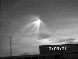 不過,不管怎么說,俄軍方要求天文愛好者把拍到的錄像給他們看看,結(jié)果斷定確實(shí)是二級火箭分離時的情景。至此,在全世界都鬧得沸沸揚(yáng)揚(yáng)的鄂木斯克城UFO之謎真像大白。圖為當(dāng)時拍的奇異情景(徐冰川/聞新芳)