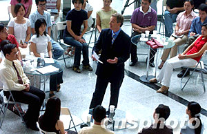 據(jù)了解,清華大學(xué)曾經(jīng)接待過多位外國(guó)政要,但以這種圓桌座談會(huì)的形式,還是第一次。參加座談會(huì)的清華大學(xué)微光機(jī)電集成研究室主任尤政教授表示,這種形式可以避免學(xué)生們產(chǎn)生與布萊爾的距離感,可以更加自由與平等的交談。這次活動(dòng)也吸引了眾多的國(guó)內(nèi)外媒體,初步目測(cè),至少有四十名記者在現(xiàn)場(chǎng)采訪。