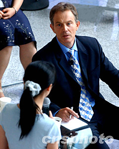 中新社北京七月二十二日電(記者齊彬)今天上午十點(diǎn),英國(guó)首相布萊爾在清華大學(xué)校長(zhǎng)顧秉林的陪同下,來到這所知名學(xué)府,與清華學(xué)子們進(jìn)行一場(chǎng)長(zhǎng)達(dá)四十五分鐘的面對(duì)面座談會(huì),并回答提問。
