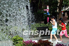 香港天氣持續(xù)炎熱,小童在香港公園噴水池玩樂消暑。作者:洪少葵