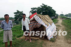 圖:村民堅(jiān)守淮河大堤迎接第三次洪峰到來(lái)