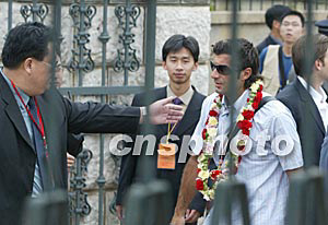 隨后下車的羅納爾多、齊達(dá)內(nèi)、菲戈、勞爾等巨星的號(hào)召力顯然不如剛剛加盟皇馬的貝克漢姆,圍在身邊的記者要少許多。趁此之機(jī),本社記者在第一時(shí)間采訪了菲戈,菲戈告訴記者,這是他第一次到中國(guó)大陸,感覺(jué)很不錯(cuò)。