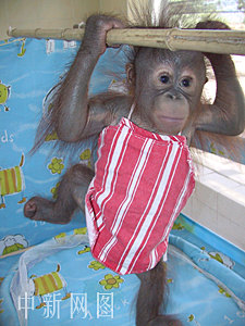 浙江今年經(jīng)歷了五十年一遇的高溫氣候。然而在飼養(yǎng)員的精心照料下,杭州動(dòng)物園里的珍稀動(dòng)物度過(guò)一個(gè)愜意的酷暑。圖為中國(guó)目前僅有二十余只的珍稀動(dòng)物紅毛猩猩正在舒適地享受空調(diào)。