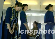 經(jīng)過了SARS對旅游經(jīng)濟的沖擊后,海南省的旅游市場目前已經(jīng)全面復蘇。周末假日,海南航空公司從各地飛往海南的班機全部爆滿,身著“海南服”的空姐歡迎來自四面八方的乘客。中新社記者:任晨鳴