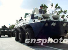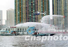 在反水上劫持人質(zhì)事件的處置行動(dòng)中,情況設(shè)想是恐怖分子在某國(guó)際俱樂(lè)部大型招待會(huì)上施放毒氣后企圖沿珠江逃竄。在江邊,恐怖分子乘上了一艘快艇,劫持珠江面上的一艘游船,以船上的游客作為人質(zhì),與我方對(duì)峙。廣東省反恐總指揮部開(kāi)展空中偵察、水上堵截、陸上封鎖、談判攻心等處置,最終及時(shí)解救人質(zhì)、排除爆炸物品、搶救傷員并抓獲“恐怖分子”。