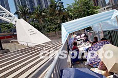 7月30日,近千香港市民在大球場(chǎng)排隊(duì),等候8月1日公開發(fā)售的“皇馬”對(duì)香港聯(lián)隊(duì)入場(chǎng)券,足球總會(huì)經(jīng)過緊急會(huì)議后,決定提早在31日晚上公開售票。作者:洪少葵
